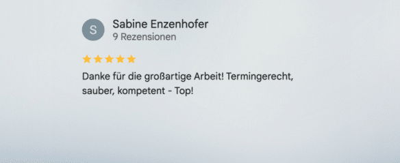 »Sehr gute Abwicklung, saubere Arbeit, freundlich und verlässlich!«