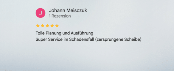 »Tolle Planung und Ausführung. Super Service im Schadensfall (zersprungene Scheibe)«