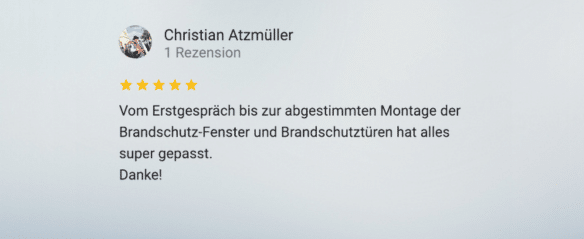 »Vom Erstgespräch bis zur abgestimmten Montage der Brandschutz-Fenster und Brandschutztüren hat alles super gepasst. Danke!«