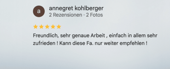 »Freundlich, sehr genaue Arbeit, einfach in allem sehr zufrieden! Kann diese Fa. nur weiter empfehlen!«