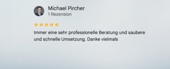 »Immer eine sehr professionelle Beratung und saubere und schnelle Umsetzung. Danke vielmals.«